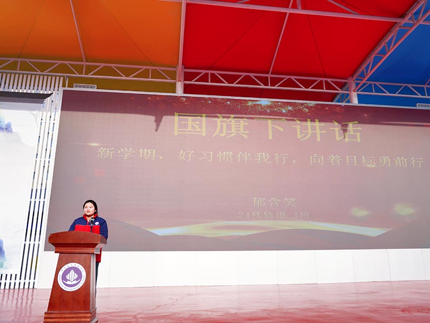 学生代表郁含笑在国旗下进行了“新学期,好习惯伴我行,向着目标勇前行”主题讲话,向同学们发出倡议:在新学期里,明确学习目标,勤奋学习。养成良好的习惯,成为垃圾分类的践行者、文明礼仪的推行者。同时,与同学和睦相处,遇到事情及时找老师。